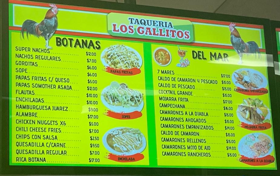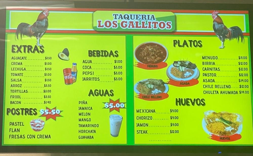 Los Gallitos presents a diverse menu, showcasing the best of Mexican cuisine. Diners find a wide variety, from tacos to huaraches. Tacos are a highlight, with over 17 different proteins to choose. The average taco price is just $4.66. Burritos and platillos offer hearty options, ideal for hungry patrons. Specialties like carne asada and barbacoa highlight the culinary experience here, all around the $11 to $20 range.